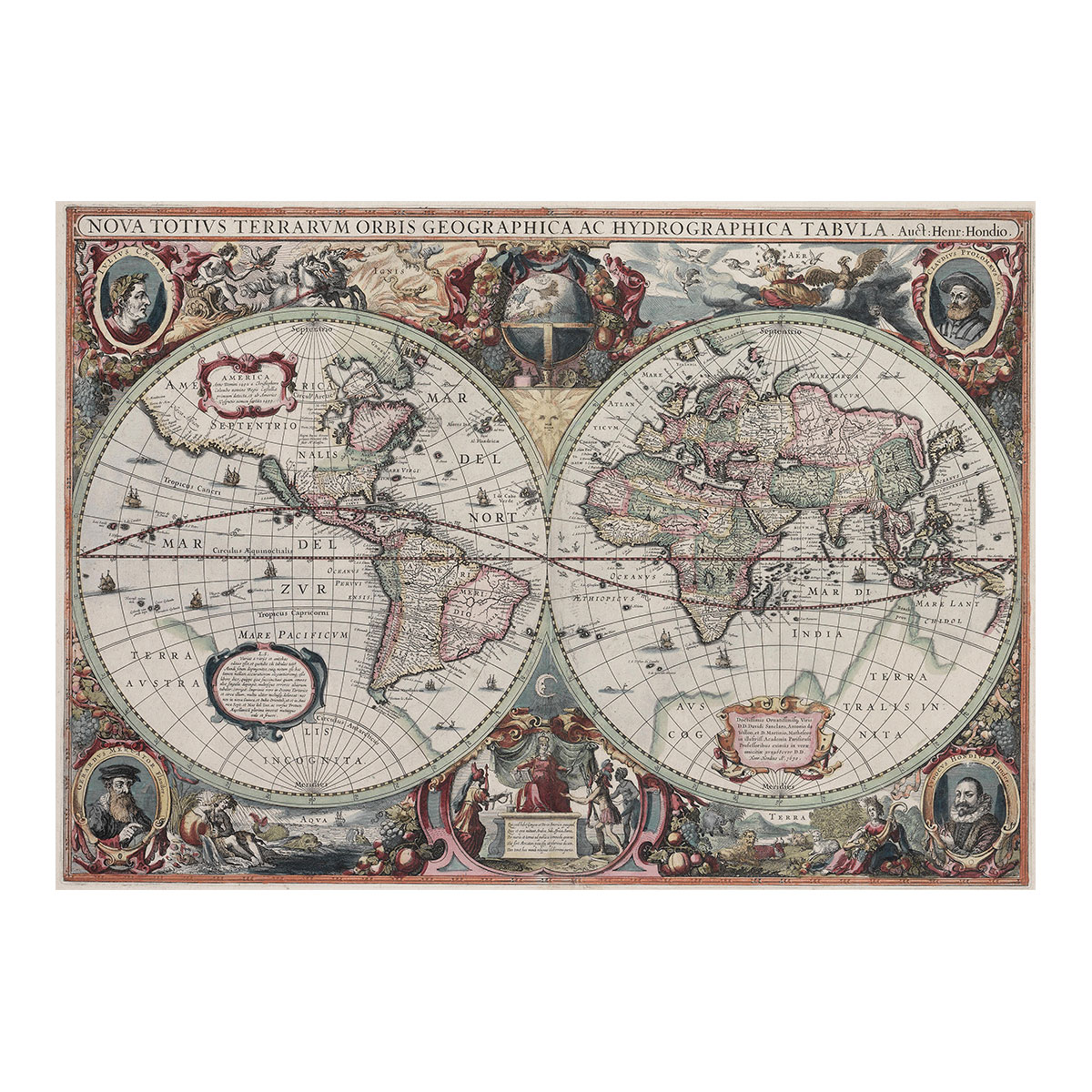 Dieses edle Holzpuzzle mit 1000 Teilen zeigt eine detailreiche antike Weltkarte im Stil des 17. Jahrhunderts.