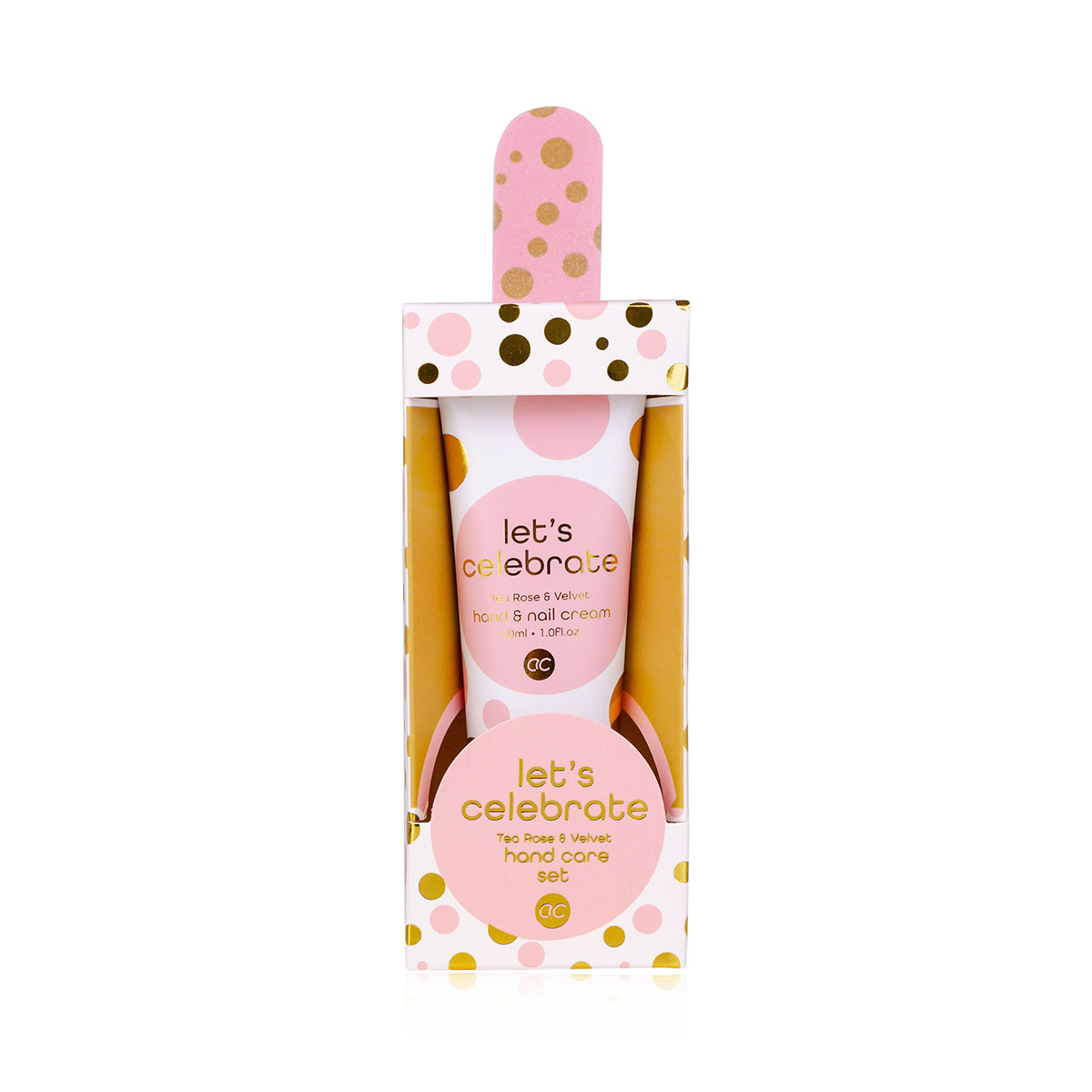 • 1x Handpflegeset LET'S CELEBRATE in Geschenkbox, inkl. 30ml Hand- & Nagelcreme,  Nagelfeile, Duft: Tea Rose & Velvet